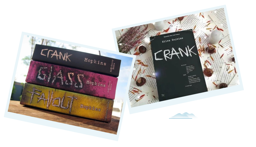此类作品早期经典当推1971年的上瘾者匿名日记《请问爱丽丝》(Go Ask Alice)。近年著名的《Crank》三部曲,出自中生代作家霍普金(Ellen Hopkins)之手。她因为女儿接触安毒,全家走过人间炼狱,勇敢跨出熟悉的知识性文类,以少女第一人称口吻,散文诗形式创作系列小说,意外登上New York Time受欢迎书排行榜。千万读者进入克莉斯和其分裂人格埠丽,一步步为毒瘾侵袭,如同从美梦跌入噩梦。