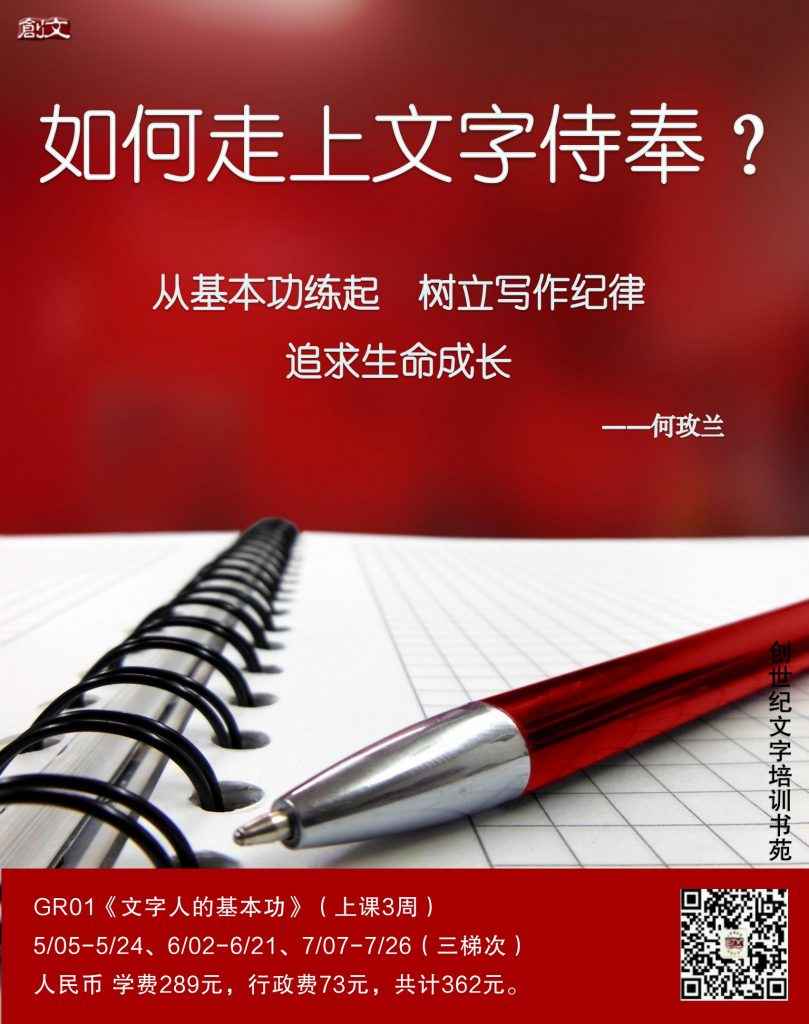 从基本功练起,树立写作纪律,追求生命成长。欢迎查看文末海报,了解GR01《文字人的基本功》。