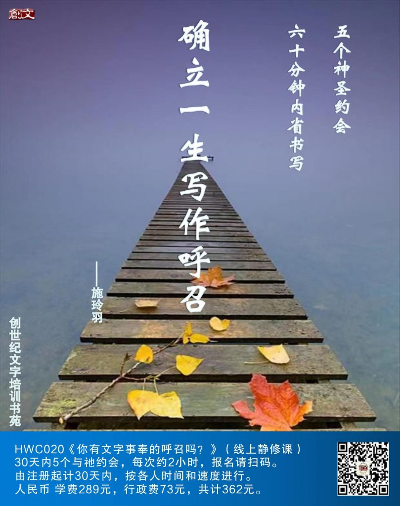 五个神秘约会,六十分钟内省书写,确立一生写作呼召。欢迎查看文末海报,了解HWC020《你有文字事奉的呼召吗?》(线上静修课)。