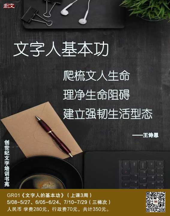 爬梳文人生命,理净生命障碍,建立强韧生活型态,欢迎查看文末海报,了解GR01《文字人的基本功》。