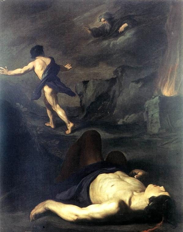 献祭,是象征与上帝和好,与人和好的行动。明明是如此美好的一件事,怎么到最后会闹出人类历史上第一桩谋杀案呢?……没错,因为上帝不接纳该隐所献的祭,该隐嫉恨、狂怒。