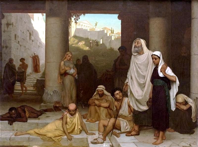 耶路撒冷是犹太人一年三次守节期朝圣的大城,南北交汇的枢纽,也是鱼龙混杂的地方。阳光越明媚的地方,影子就越黑暗;城市越繁华,肮脏龌龊的角落就越多。瞎子闻到过酒气和尸臭混杂的味道,听到过棍棒打碎人骨头沉闷的声响,也品尝过路人“好心”赠送的满口泥沙。