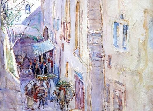 又过了两天,车流和人流的声音渐渐多起来,他就知道是该去耶路撒冷城里走走了。瞎子一手拿着拐杖,一手拿着赭石色的破瓦碗,左肩头挂上法利赛人给的乞讨袋,开口唱道: