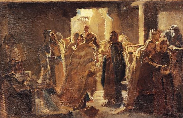 会堂里的人立刻争吵起来,有人同意老者的话,但也有人质疑是否应该找两个以上的证人才可定罪。